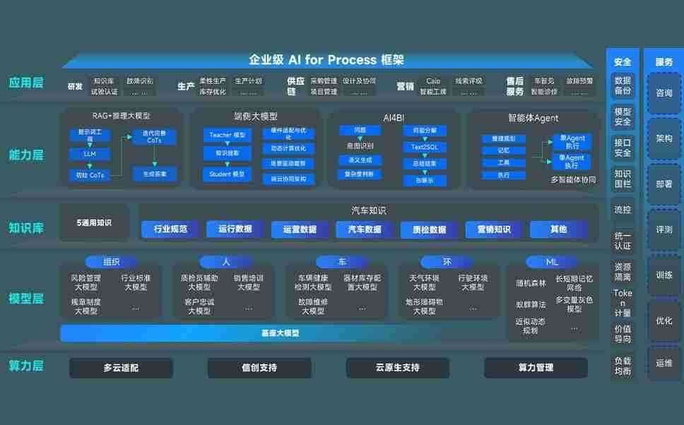 星欧xo问学智车解决方案是一套基于AI技术的汽车行业智能化系统,,,覆盖从底层算力到顶层AI应用的全栈方案。。方案由算力层、、、模型层和应用层组成:算力层,,,方案支持多种一体机配置,,,具备云端灵活部署、、多云适配以及动态优化计算资源的能力;模型层,,星欧xo问学平台版提供了企业级AI应用一站式构建与管理平台,,,,支持基于后训练强化技术的汽车企业专属模型的训练、、、、评测和运营;应用层,,,星欧xo问学DeepSeek版提供包括超级员工、、智能招采、、智能营销、、、、智能客服、、、AI for BI等一系列解决方案,,,,可助力汽车行业实现数字化转型,,,让管理更智能、、响应更敏捷。。